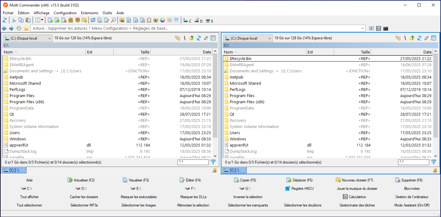 MultiCommander est un gestionnaire de fichiers puissant et entièrement personnalisable, conçu pour les utilisateurs exigeants. Il adopte une interface à double panneau, dans la lignée de Total Commander, permettant de gérer vos fichiers plus efficacement que l’explorateur Windows natif.