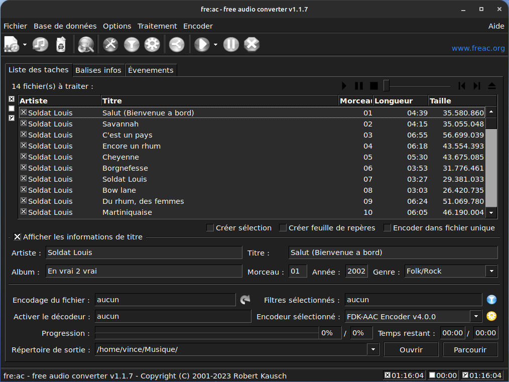 • Extraction de CD audio en divers formats (MP3, Ogg Vorbis, AAC, FLAC, WMA, Bonk, etc.)