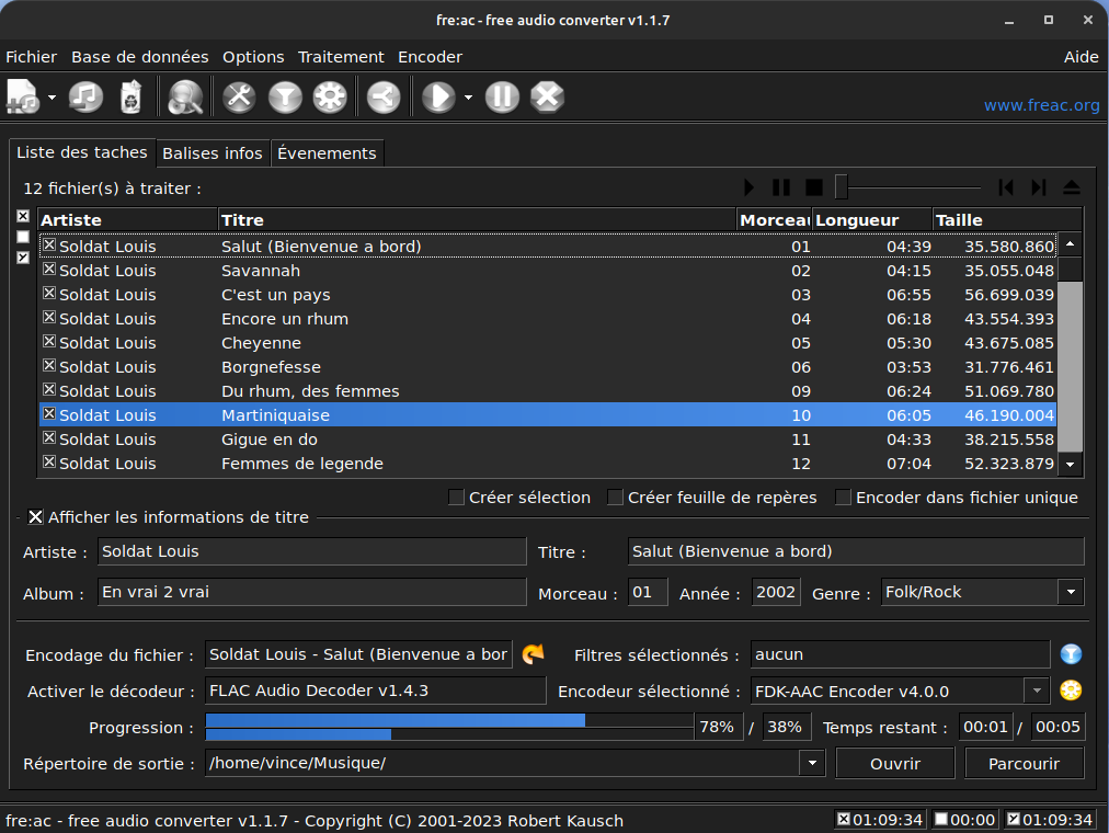 • Conversion entre formats audio (mp3 vers Flac, wav vers flac, etc.)
