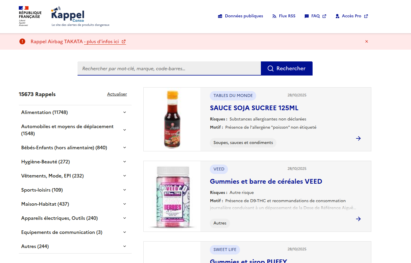 🇲🇫 RappelConso recense les rappels de produits dangereux ou défectueux