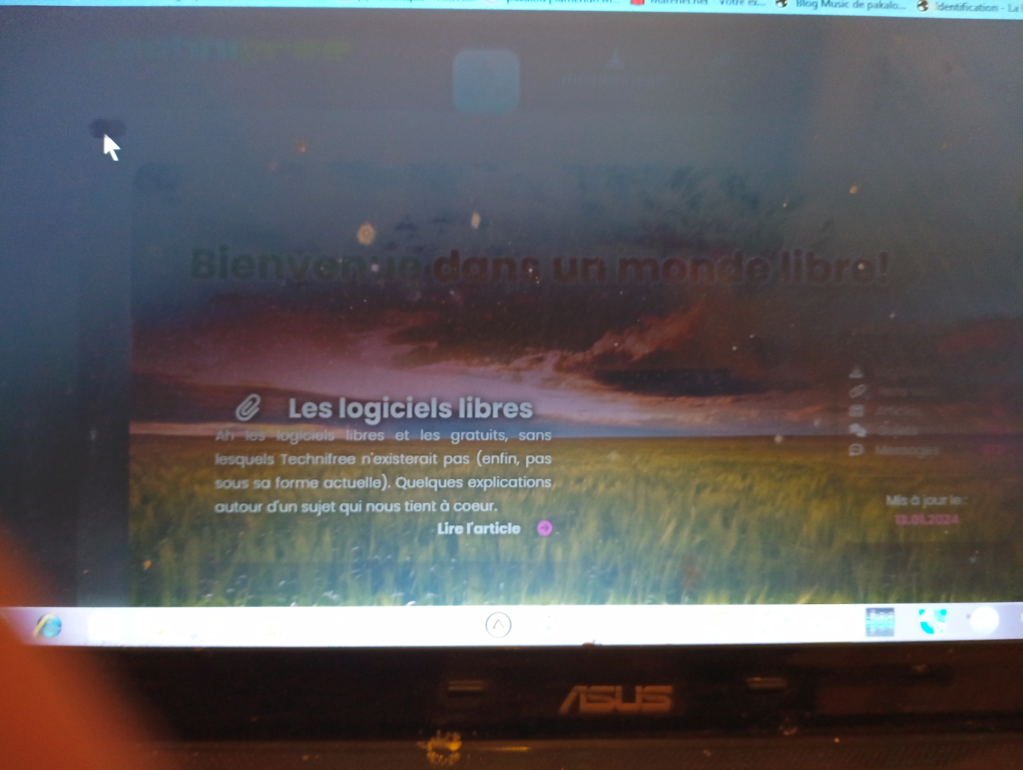 Salut quand j ouvre Technifree avec le navigateur Waterfox ( c est la première fois que j essaie ) sur PC il est en mode sombre et impossible de passer en mode clair , aucune action possible avec la souris et impossible de parcourir le menu et les rubriques tout reste figé, sur mon PC avec Chrome aucun problème il est bien en mode clair ainsi que sur mon smartphone PS et impossible de supprimer une pièce jointe dans mon message à partir de mon smartphone, voir capture
