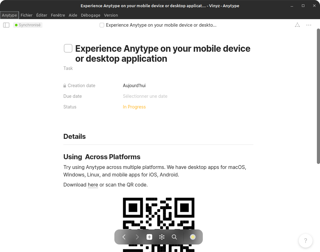 Anytype est un outil open-source, local d’abord, peer-2-peer (P2P), qui peut être utilisé pour une variété de tâches telles que la gestion de projets, le stockage de documents, la prise de notes quotidiennes, la gestion de tâches, les collections de livres/articles/sites web, et même comme un logiciel de CRM personnel.