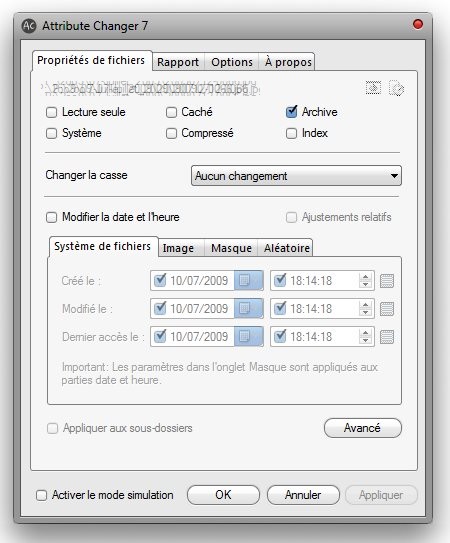 Attribute Changer est une extension légère et puissante pour l'explorateur Windows. Elle permet essentiellement de modifier les propriétés de fichiers et de dossiers, un à un ou par paquet.