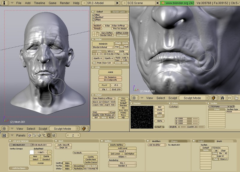 • Modélisation : Sculpture, retopologie, modélisation, courbes. Les outils de modélisation de Blender sont nombreux.