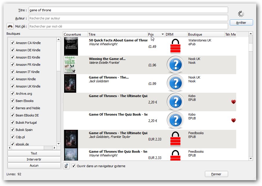 Un moteur de recherche intégré vous permettra également de trouver les livres que vous recherchez, soit dans votre bibliothèque, soit sur le net pour un achat direct.
