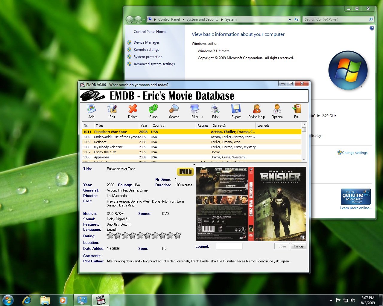 EMDB (pour Eric's Movie DataBase) est un utilitaire qui vous permettra de classer simplement vos DVD/Blue Ray et autres fichiers vidéos.