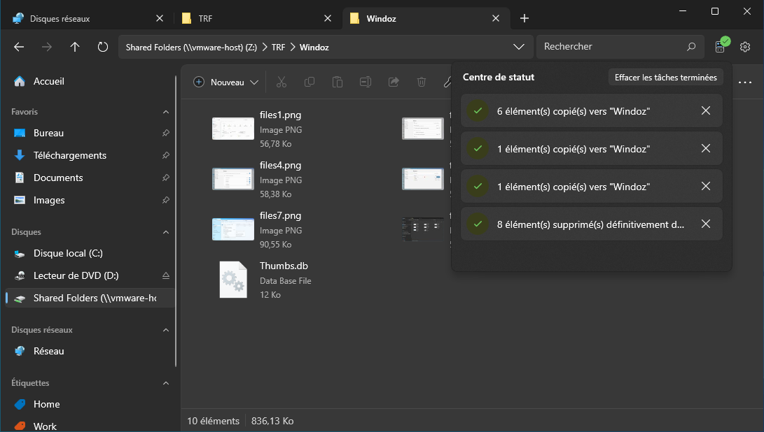• Quelques bugs comme devoir rafraîchir manuellement (F5) le contenu d'un dossier lors d'une copie de fichiers