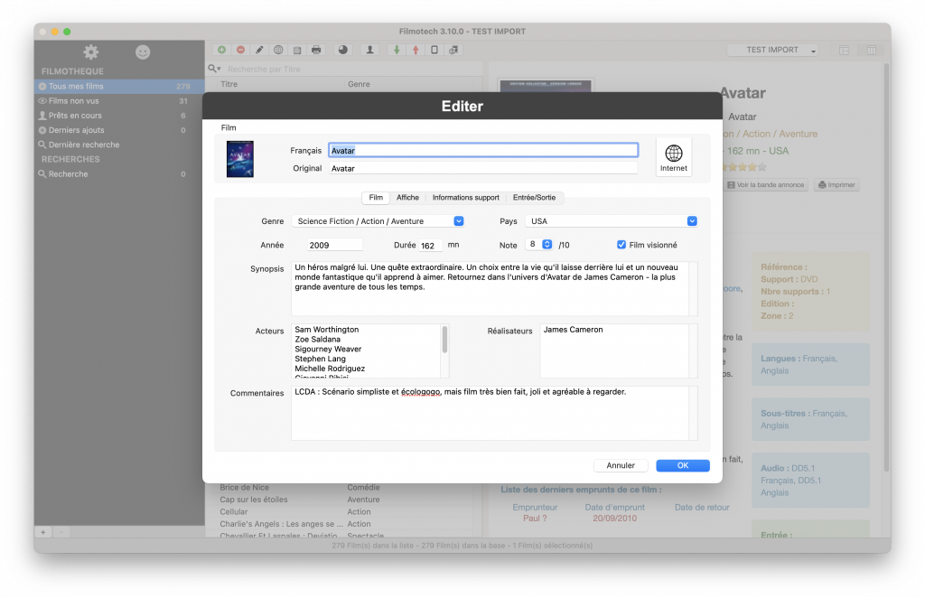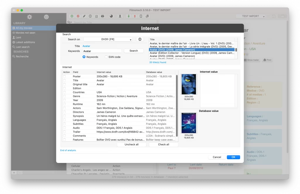 • Le rapatriement des informations concernant les films nécessite bien sûr une connexion Internet,