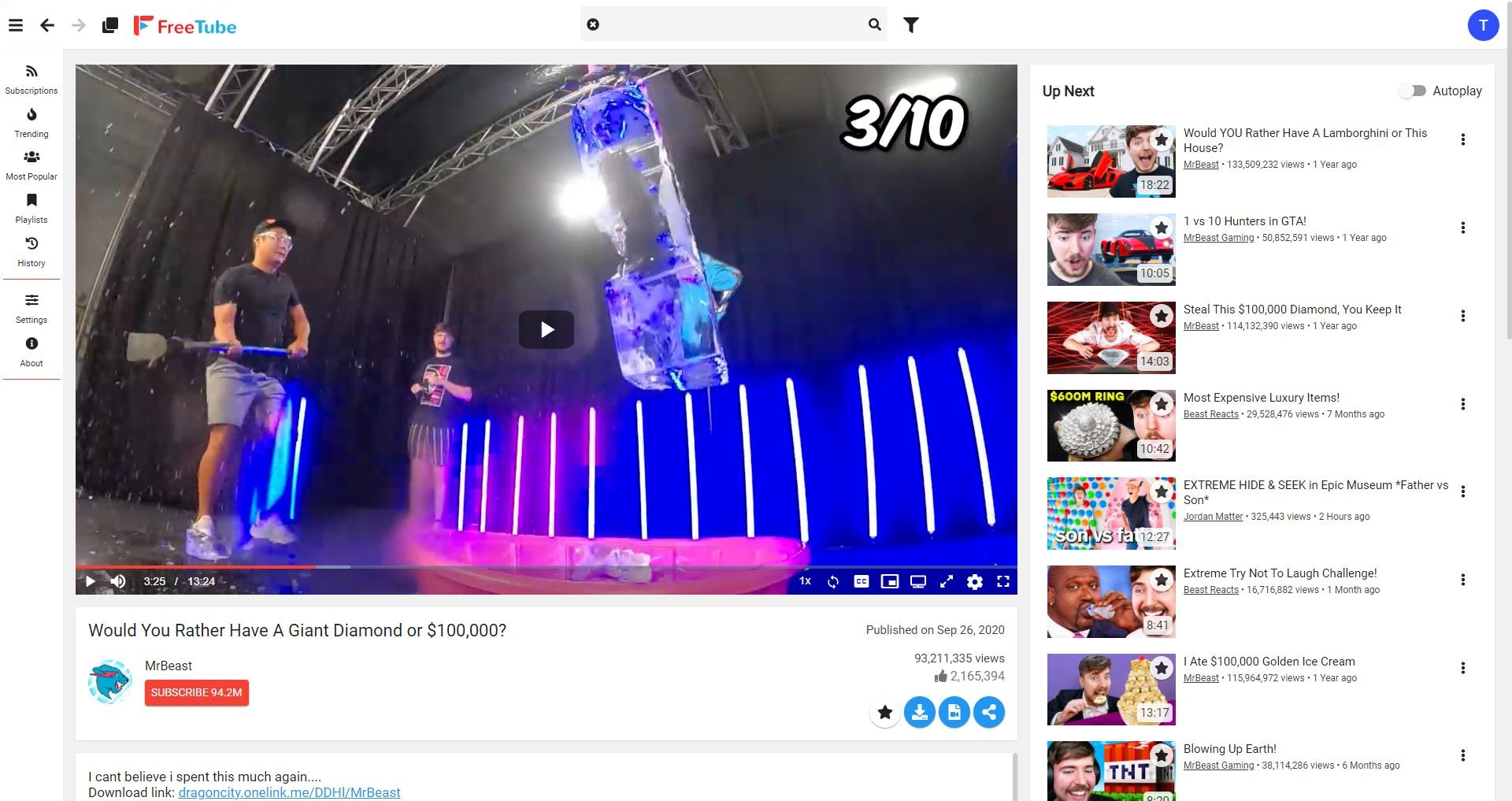 FreeTube est un client YouTube pour Windows, Mac et Linux conçu pour une utilisation plus privée de YouTube. Vous pouvez profiter de votre contenu et de vos créateurs préférés sans que vos habitudes soient suivies. Toutes vos données d'utilisateur sont stockées localement et ne sont jamais envoyées ou publiées sur Internet. FreeTube recueille les données en récupérant les informations dont il a besoin (à l'aide de méthodes locales ou en utilisant l'API Invidious). Avec de nombreuses fonctionnalités similaires à celles de YouTube, FreeTube est devenu l'une des meilleures méthodes pour regarder YouTube en privé sur un ordinateur de bureau.