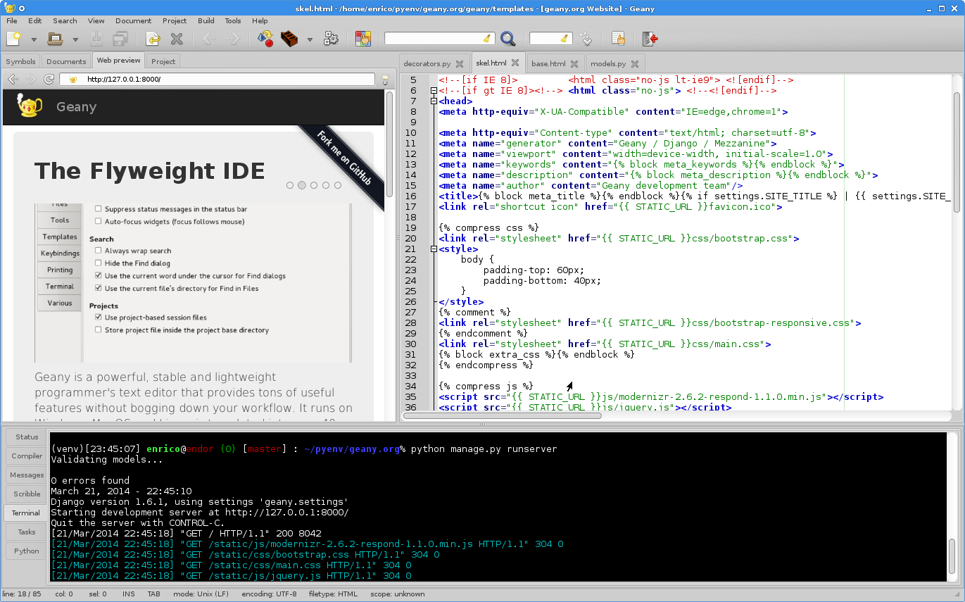 • Support de plusieurs langages : Geany prend en charge de nombreux langages de programmation, tels que C, C++, Java, Python, PHP, Ruby, et bien d'autres, grâce à des plugins.