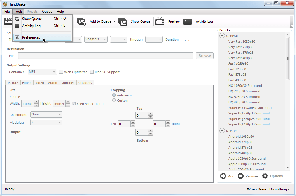 • Préréglages intégrés : Démarrez avec HandBrake en quelques secondes en choisissant un profil optimisé pour votre appareil, ou choisissez un profil universel pour des conversions standard ou de haute qualité. Simple, facile, rapide. Pour ceux qui veulent plus de choix, modifiez de nombreuses options de base et avancées pour améliorer vos encodages.