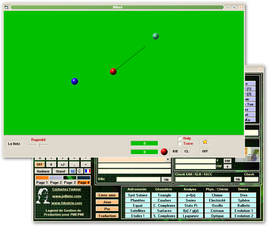 Jeux : Gravitation (tirs, sous marins) et pendule chaotique, Satellites, Solitaire, Le Jeu de la Vie, Invaders, Pouss Pouss, Tetris, Biorythmes, simulation de Billards (français, indien), Tic Tac Toe, Citations cryptées, Hex, Le compte est bon (avec recherche de solutions), Géographie (France), Alunissage...