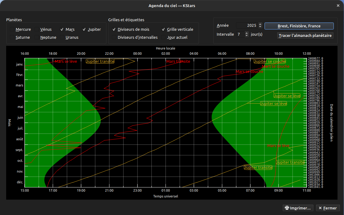 • Un ensemble d'outils de prédiction des conjonctions, affichage de la position des planètes en fonction du temps, réalisation de calculs astronomiques, etc.