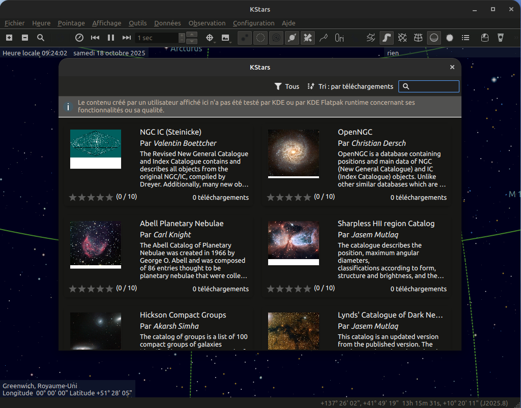 • Puissant et complet, Kstars offre de nombreuses fonctionnalités spécifiques liés à l'astronomie.