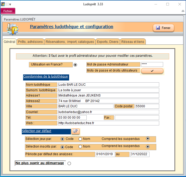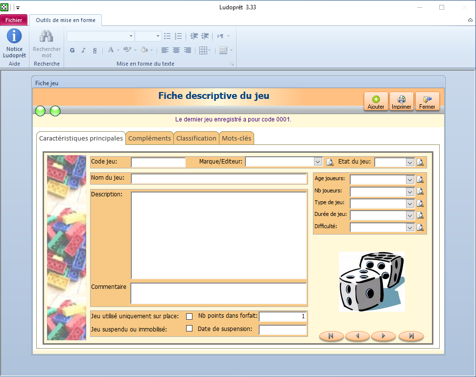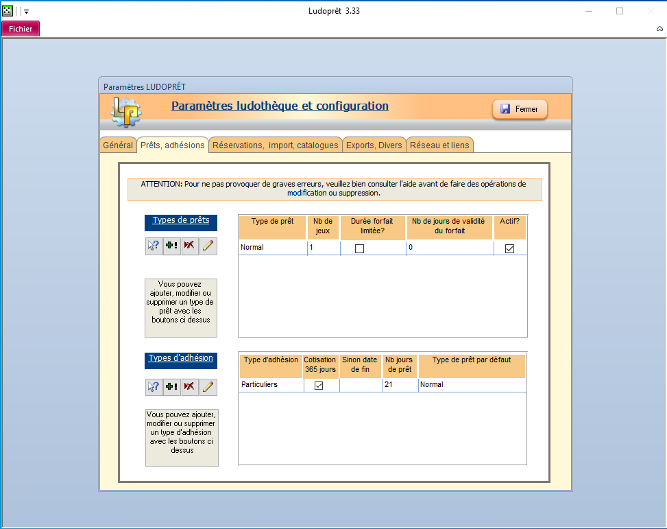 Lisez la notice complète ou téléchargez la version de démonstration sur le site de l'auteur pour vous faire une idée plus précise et voir ainsi si Ludoprêt est compatible avec votre organisation.