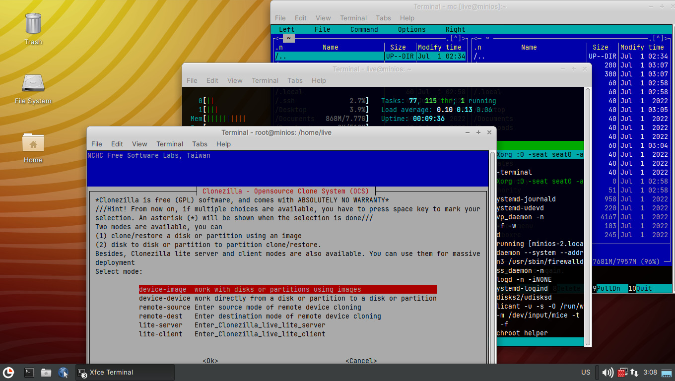 MiniOS peut être installé à l'aide de programmes populaires tels que Ventoy, Rufus, UNetbootin, balenaEtcher et bien d'autres. MiniOS prend en charge le démarrage à partir d'EFI et de Legacy-BIOS et utilise le même gestionnaire de paquets que Debian. Cela permet d'accéder aux mêmes dépôts et d'installer les mêmes paquets de logiciels.
