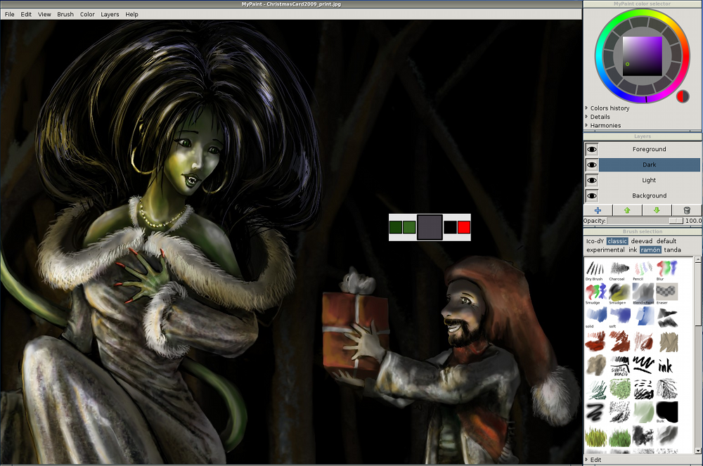 MyPaint est une application open-source à la fois simple et puissante de dessin artistique. Votre créativité n'aura plus de limites une fois le logiciel apprivoisé, vous pourrez exprimer en toute liberté vos talents d'artistes avec les nombreuses fonctions qu'il propose :