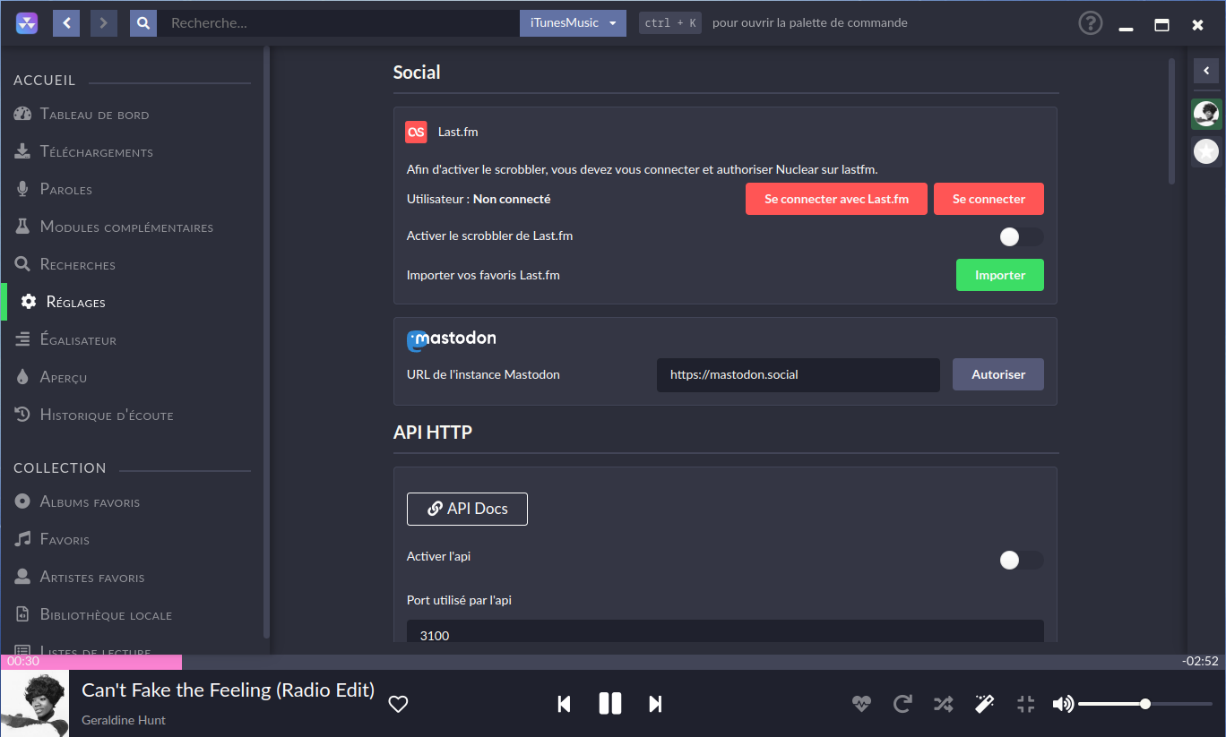 Nuclear est un lecteur de musique open source permettant d’écouter gratuitement des morceaux depuis différentes sources en ligne (YouTube, SoundCloud, Bandcamp, etc.) ainsi que depuis sa bibliothèque locale. Il se veut une alternative libre et respectueuse de la vie privée aux services de streaming commerciaux comme Spotify, sans publicité ni traçage.