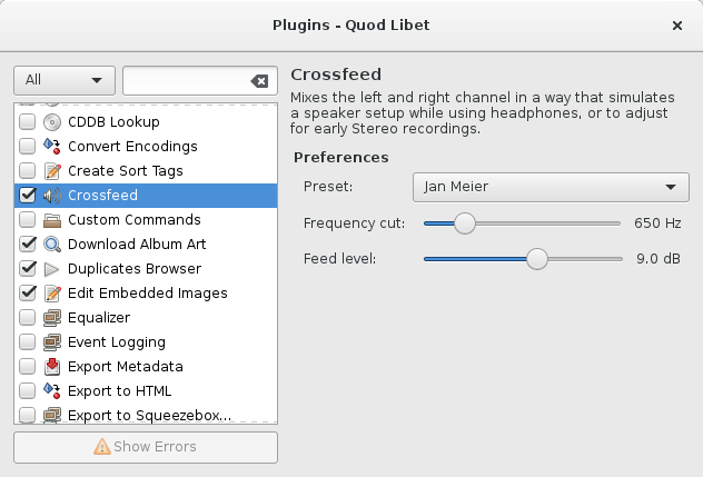 • Plugins basés sur Python - Quod Libet possède plus de 80 plugins contribués par des développeurs et des utilisateurs, y compris :
