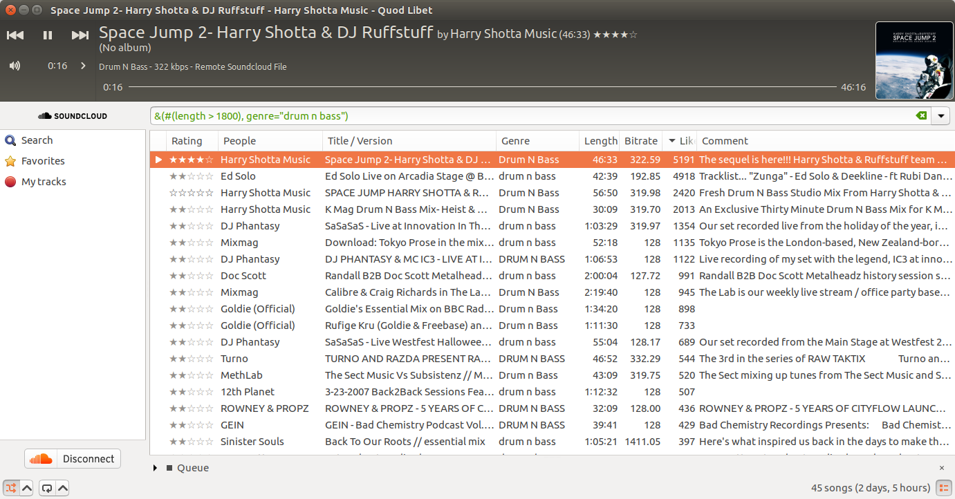 Quod Libet est un lecteur audio basé sur GTK+ et écrit en Python, utilisant la bibliothèque de marquage Mutagen. Il est conçu autour de l'idée que vous savez mieux que quiconque comment organiser votre musique. Il vous permet de créer des listes de lecture basées sur des expressions régulières (ne vous inquiétez pas, les recherches régulières fonctionnent aussi). Il vous permet d'afficher et d'éditer tous les tags que vous souhaitez dans le fichier, pour tous les formats de fichiers qu'il prend en charge.