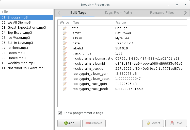• Scanner et sauvegarder les valeurs de Replay Gain sur plusieurs albums à la fois (en utilisant gstreamer).
