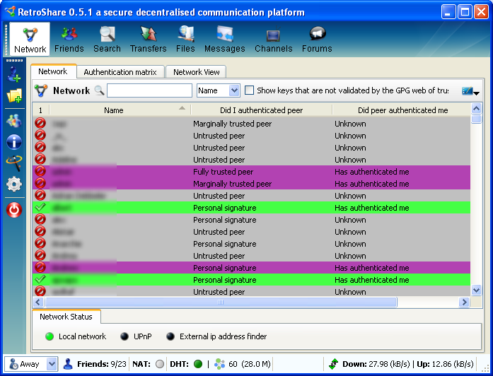 RetroShare est la nouvelle génération de réseau de partage qui fournit :