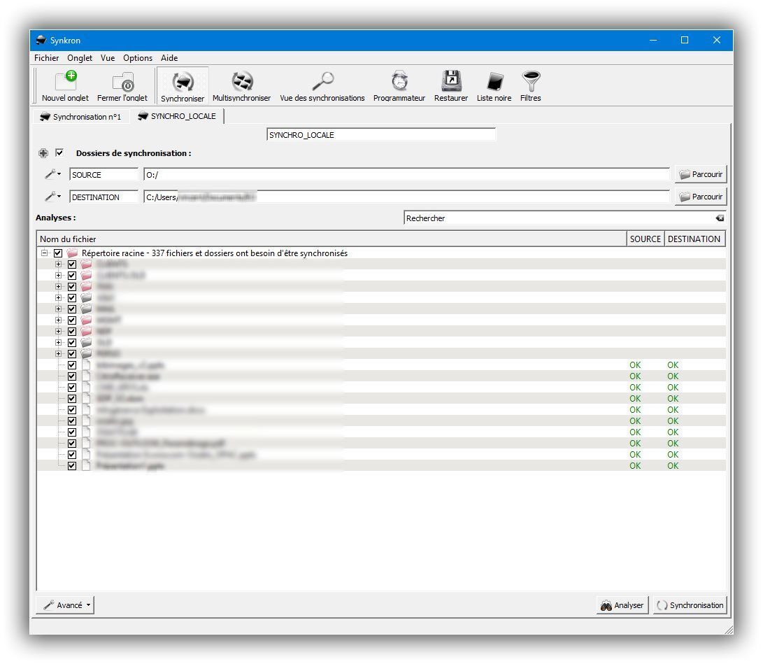 Synkron est un utilitaire de synchronisation des fichiers (par ex. d'un disque dur vers une clé USB) qui a pour principal atout d'être multi-plateforme et d'être relativement simple d'utilisation.