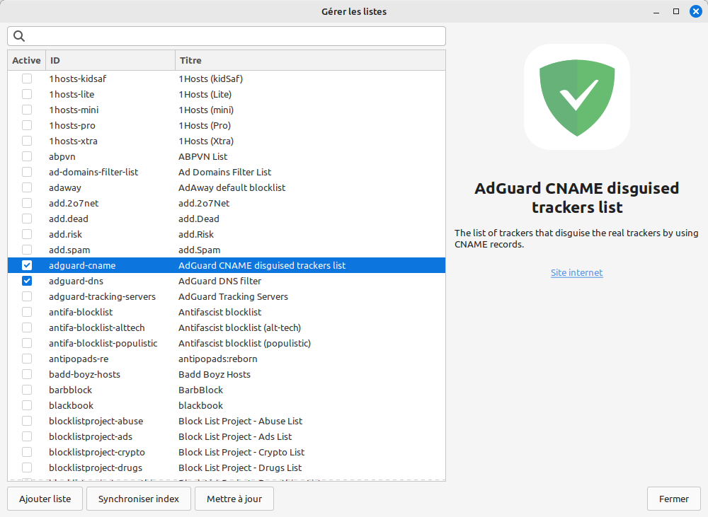 • Mises à jour automatiques : Les listes de filtres sont mises à jour automatiquement dès qu'elles atteignent leur date d'expiration.