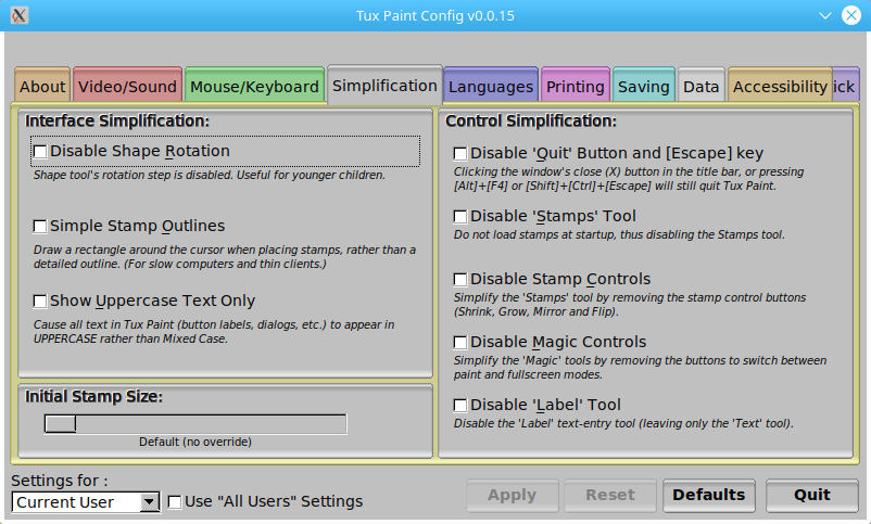 • Interface Intuitive : Tux Paint offre une interface épurée et accessible, avec de grands boutons et des icônes claires, facilitant la navigation pour les jeunes utilisateurs.