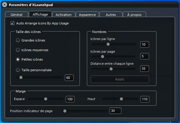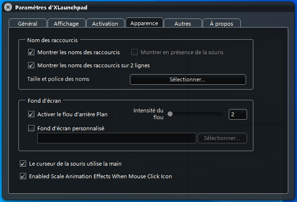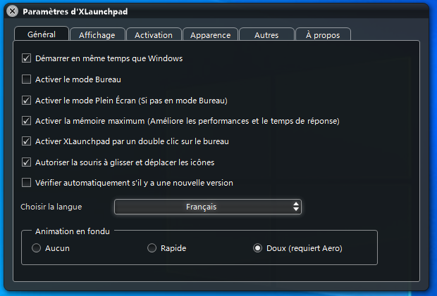 XLaunchpad vise à offrir une expérience divertissante tout en utilisant le moins de ressources système possible. Diverses options de réglage de la qualité et des performances existent pour que XLaunchpad réponde à vos besoins.