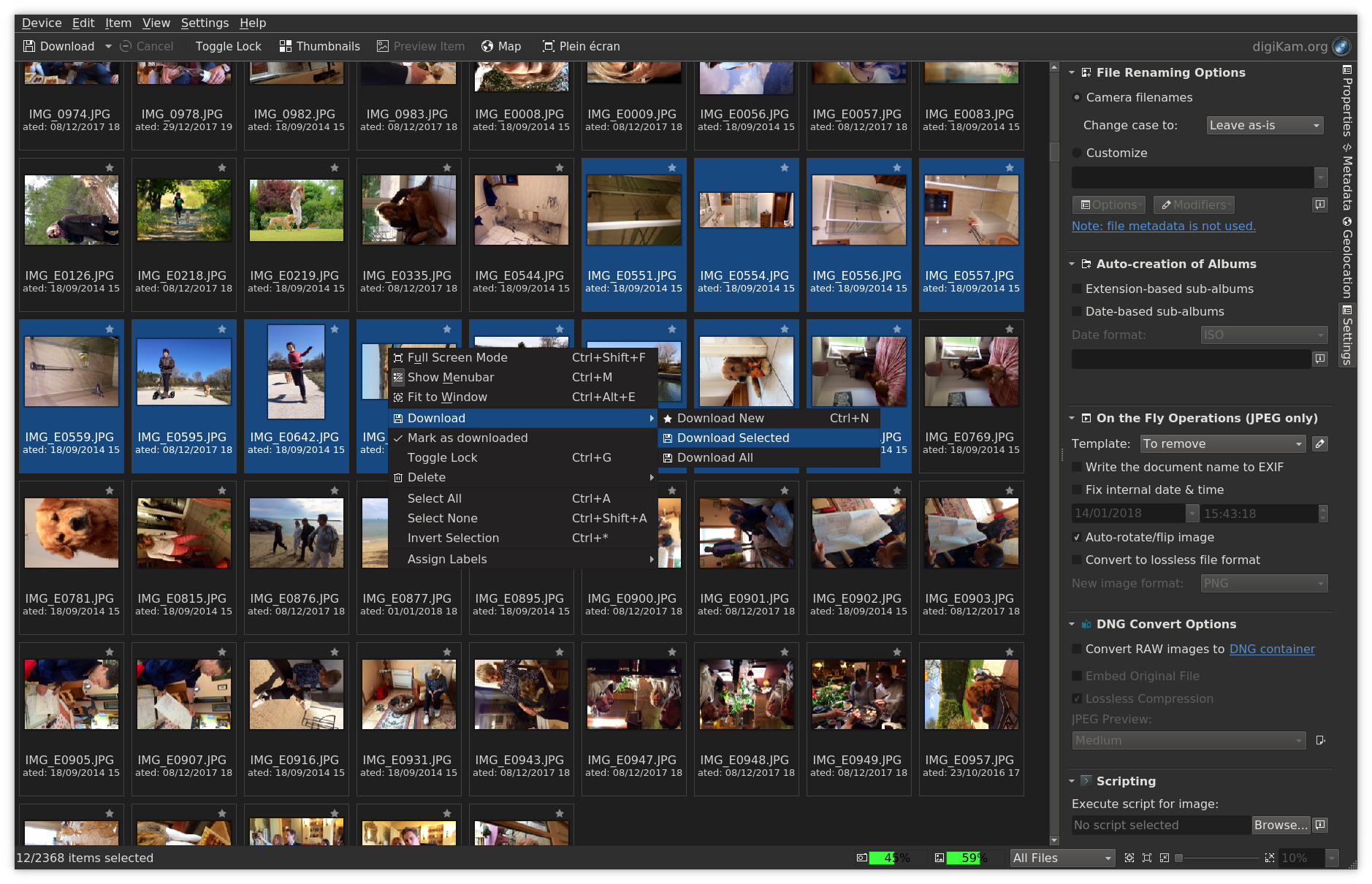 Vous pouvez utiliser les fonctions d'importation de digiKam pour transférer facilement des photos, des fichiers bruts et des vidéos directement depuis votre appareil photo et des périphériques de stockage externes (cartes SD, disques USB, etc.). L'application vous permet de configurer les paramètres d'importation et les règles qui traitent et organisent les éléments importés à la volée.
