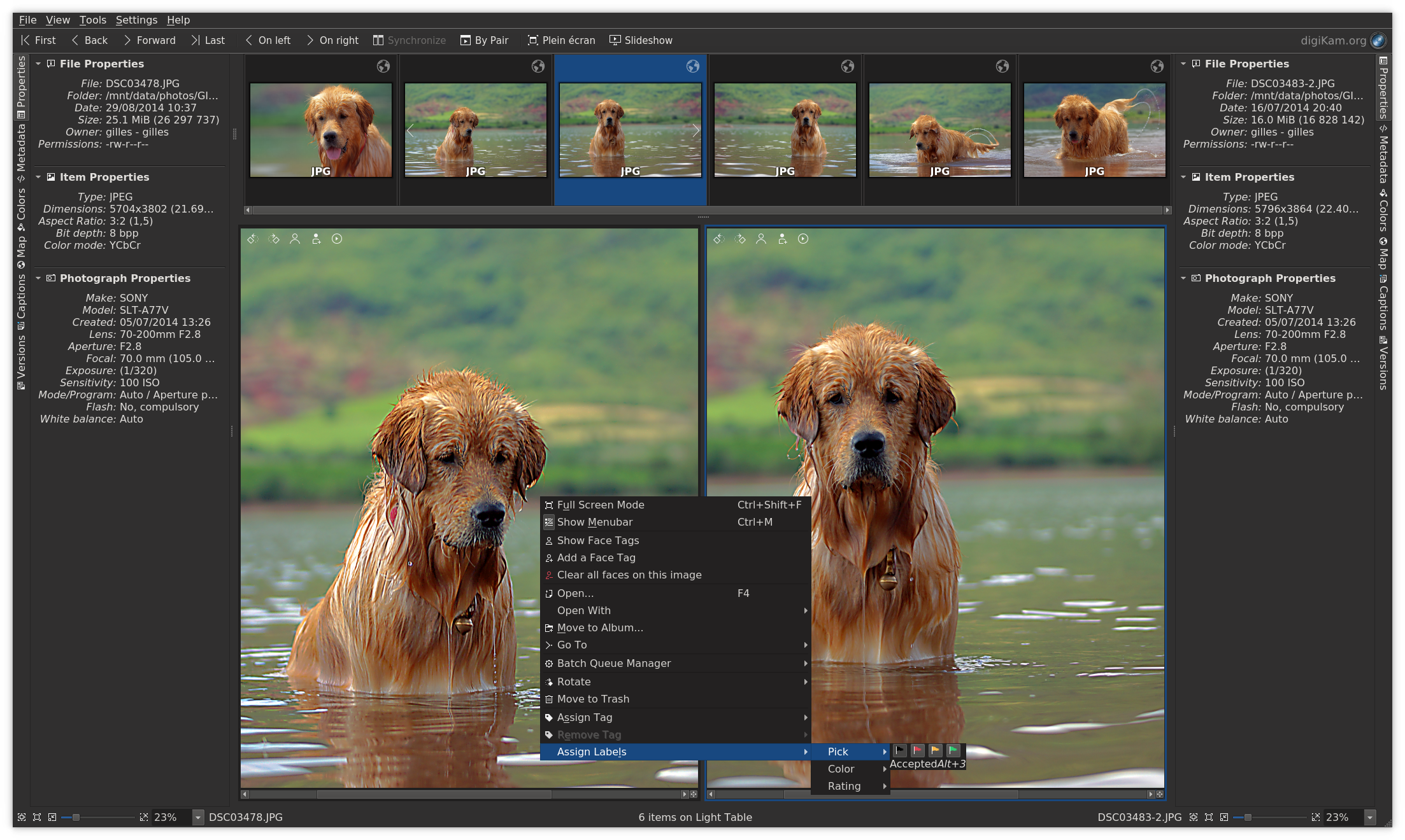 digiKam organise les photos, les fichiers bruts et les vidéos en albums. Mais l'application propose également de puissants outils de marquage qui vous permettent d'attribuer des tags, des évaluations et des étiquettes aux photos et aux fichiers bruts. Vous pouvez ensuite utiliser la fonctionnalité de filtrage pour trouver rapidement les éléments qui correspondent à des critères spécifiques.