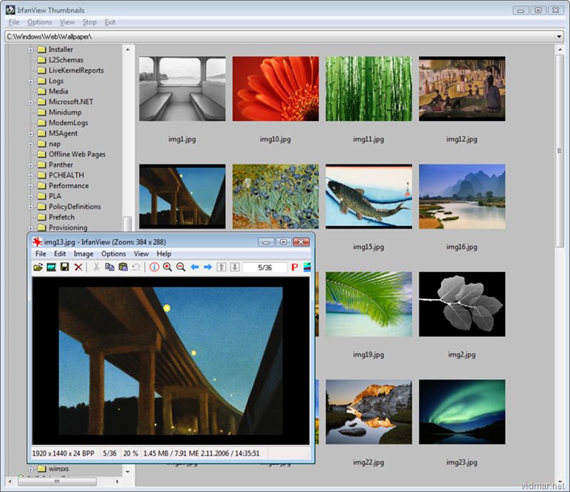 Ouverture de la plupart des fichiers images, redimensionnement, conversion, retouches, rotations, amélioration des couleurs, insertion de texte sur une image, création de diaporamas, impressions. En outre, sa compacité extrême en font un utilitaire idéal pour les config 98/Me.