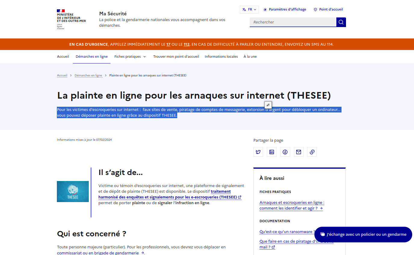 🇲🇫 Pour les victimes d'escroqueries sur internet : faux sites de vente, piratage de comptes de messagerie, extorsion d'argent pour débloquer un ordinateur... vous pouvez déposer plainte en ligne grâce au dispositif THESEE.