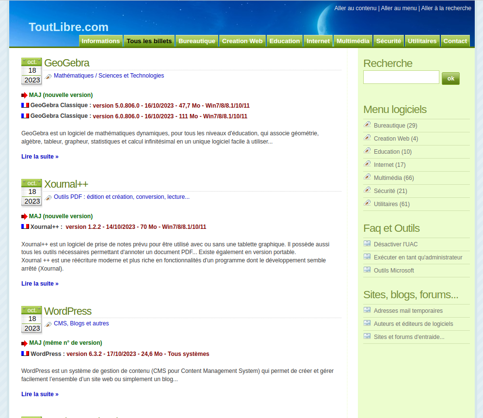 🇲🇫 Toutlibre.com est un site, un peu comme Technifree, qui présente de manière structurée et sérieuse des logiciels libres / gratuits / freewares.