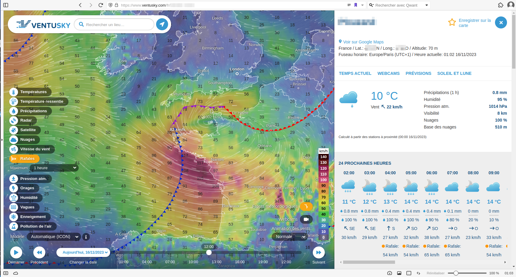 La météo terrestre fonctionne comme un système interdépendant. Par exemple, un ouragan dans l'Atlantique peut influencer la distribution des formations de pression en Europe. Parfois, il peut même arriver en Europe sous la forme d'une tempête post-tropicale. L'application Ventusky permet d'illustrer l'interdépendance de l'ensemble du système, en affichant sur la carte l'évolution de la pression, du vent, de la couverture nuageuse, des précipitations et de la température.
