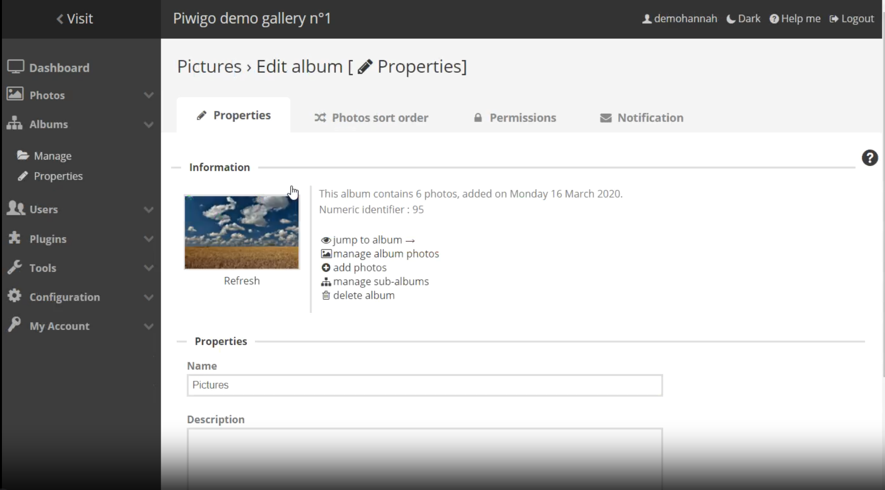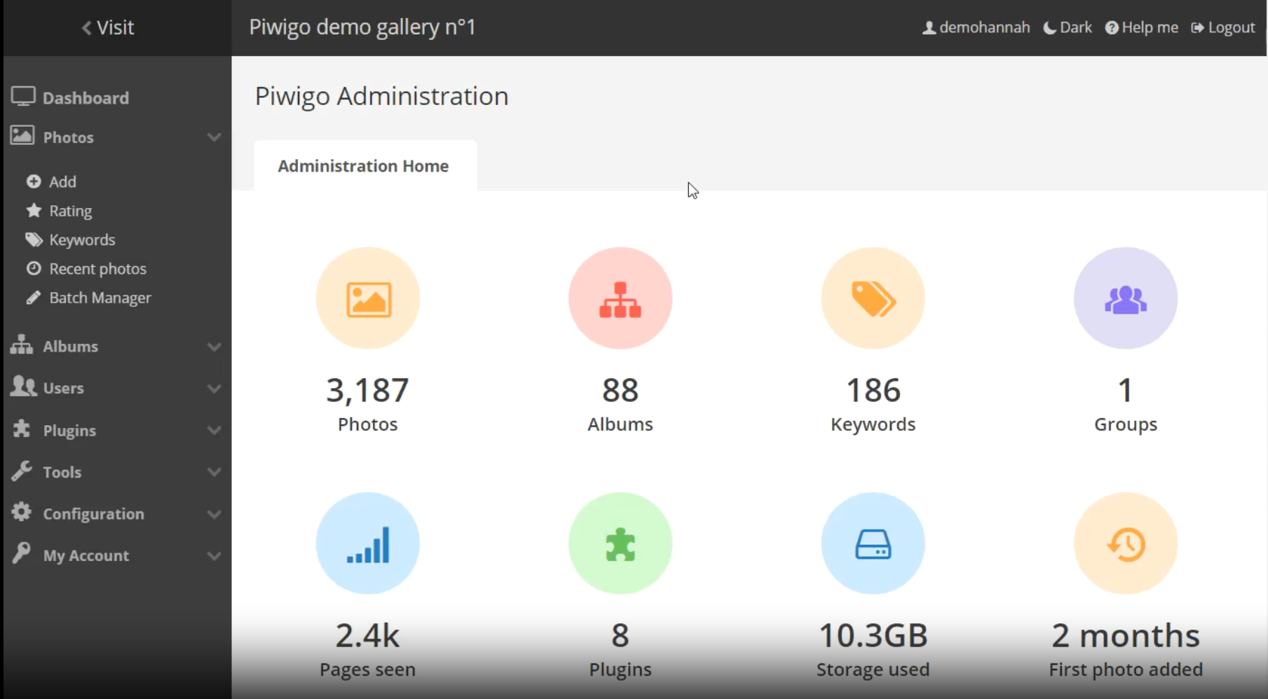 • Gestion des utilisateurs : Les administrateurs peuvent créer des utilisateurs, des groupes, gérer les permissions et envoyer des notifications. Plusieurs administrateurs peuvent travailler simultanément dans un même Piwigo. Parfait pour votre équipe !