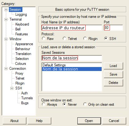 Utilitaire destiné à l'accès à distance à un système d'exploitation via le protocole SSH (remplace le Telnet non sécurisé de Windows).
