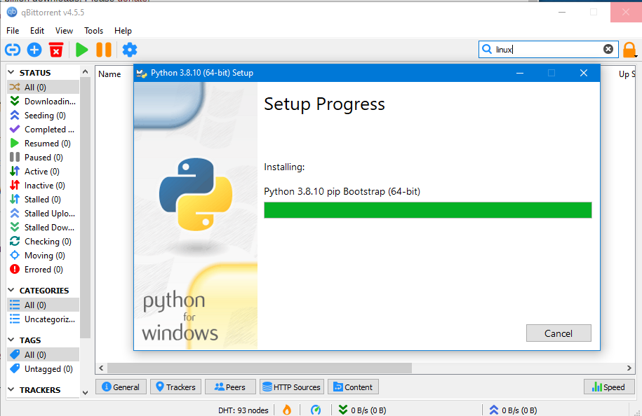 Si vous voulez utiliser le module de recherche intégré, qBittorrent vous demandera d'installer les librairies Python, ce qui se fera de manière automatique. Il faudra juste penser à redémarrer l'application après-coup.