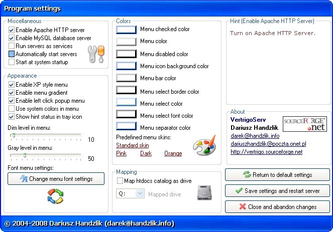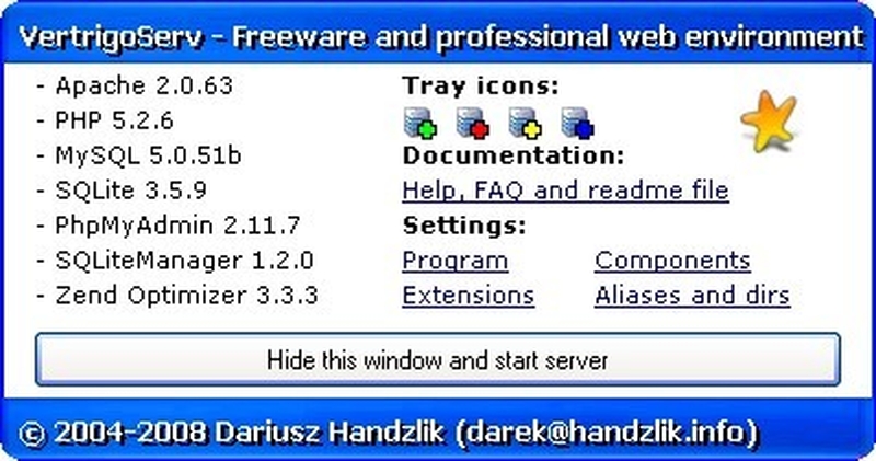 VertrigoServ est destiné à offrir un environnement de développement orienté web, il installera les produits suivants :