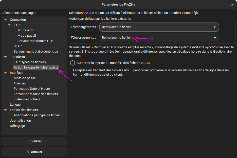 ça marche pas pour moi : c'est déjà paramétré ainsi. Et j'ai essayé en désactivant la case et aussi après en le recochant. Tant pis, je continuerai à utiliser Filezilla et à le maudire en même temps.
