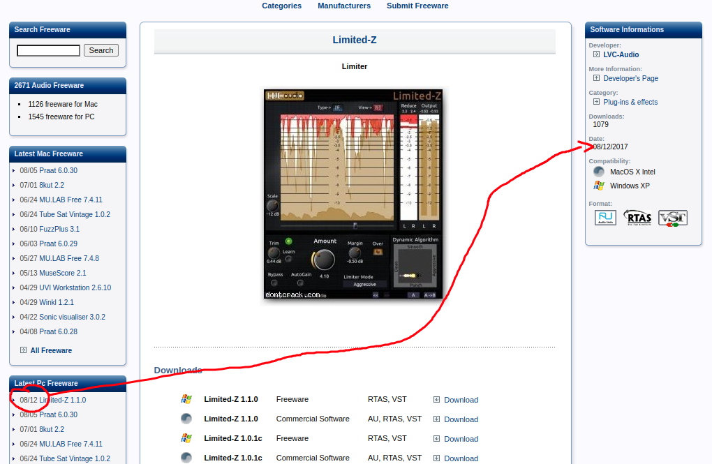 C’est un site réunissant une somme impressionante de logiciels payants ou gratuit dans le domaine de la musique. Le lien ci-contre vous amène directement à la page des programmes gratuits. Le classement est excellent, extrêmement complet. C’est une mine d’or pour faire de la M.A.O. (Musique Assistée par Ordinateur), pour en savoir plus, cliquez : ici